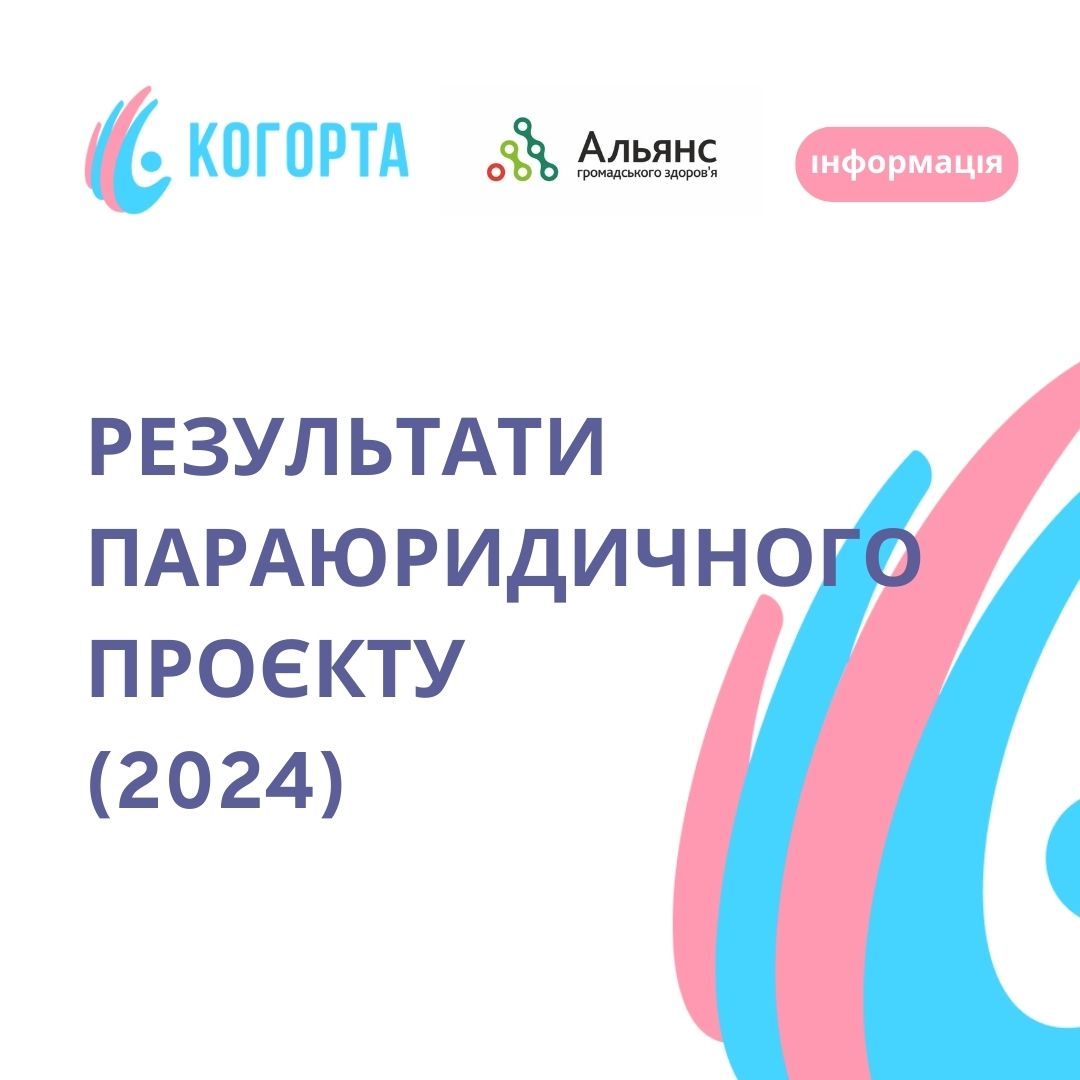 З 1 січня 2024 року ГО “Когорта” розпочала проєкт “Захист прав трансґендерних людей України за допомогою рівних параюристів”. Діяльність здійснюється за фінансової підтримки МБФ “Альянс громадського здоров’я” в рамках реалізації програми “Стійка відповідь на епідемії ВІЛ і ТБ в умовах війни та відновлення України”, яка реалізується за підтримки Глобального фонду.